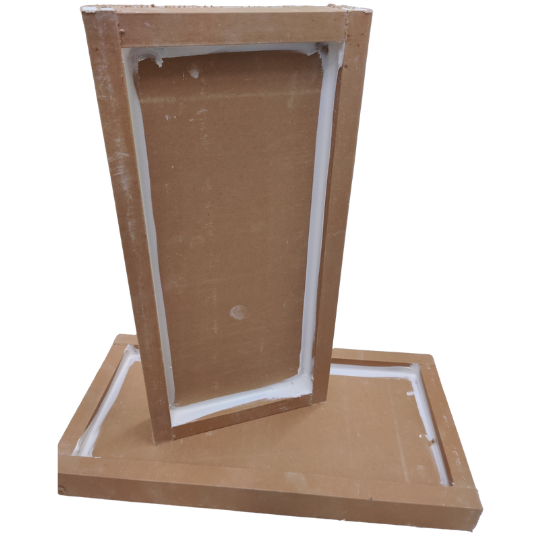 ⇒ Gipsskiva enligt kundens önskemål, de angivna ytter- (v) och innermåtten (s) används